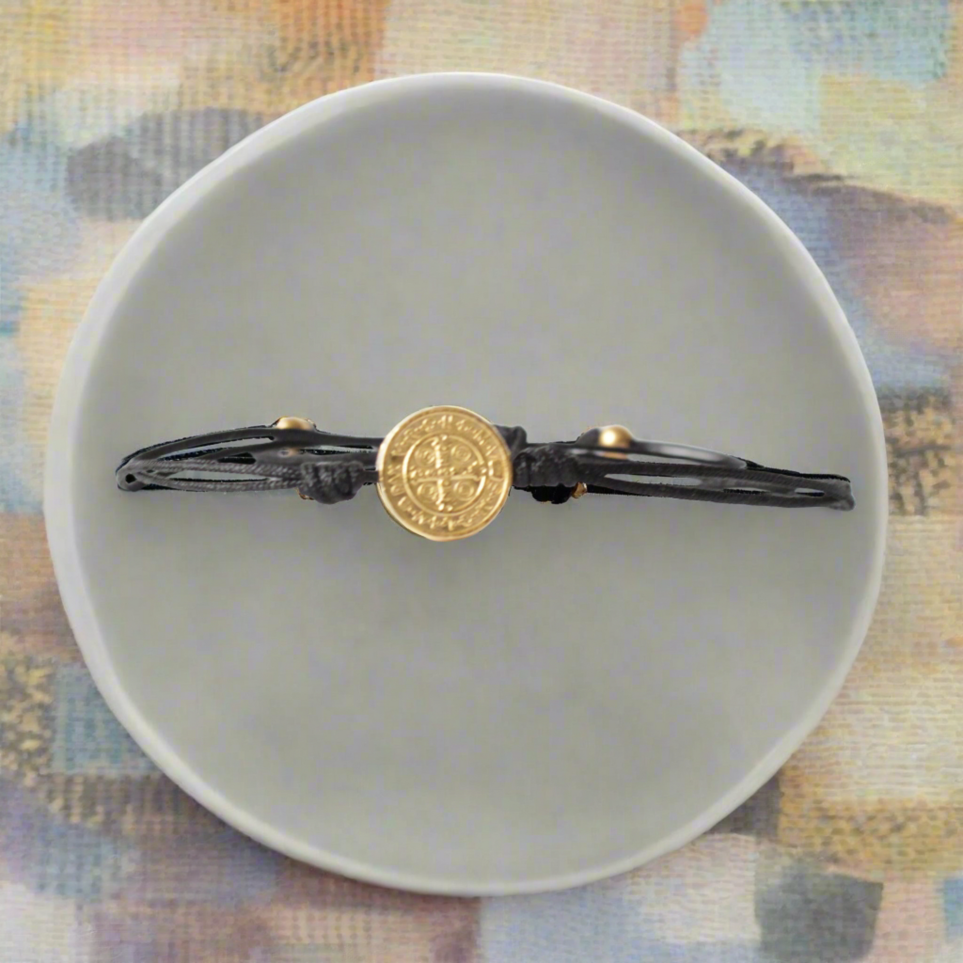 Q: What materials are used in the Miyuki Saint Benedict Wrap Bracelet? A: The bracelet is handcrafted using high-quality Miyuki beads and features a durable, adjustable clasp.