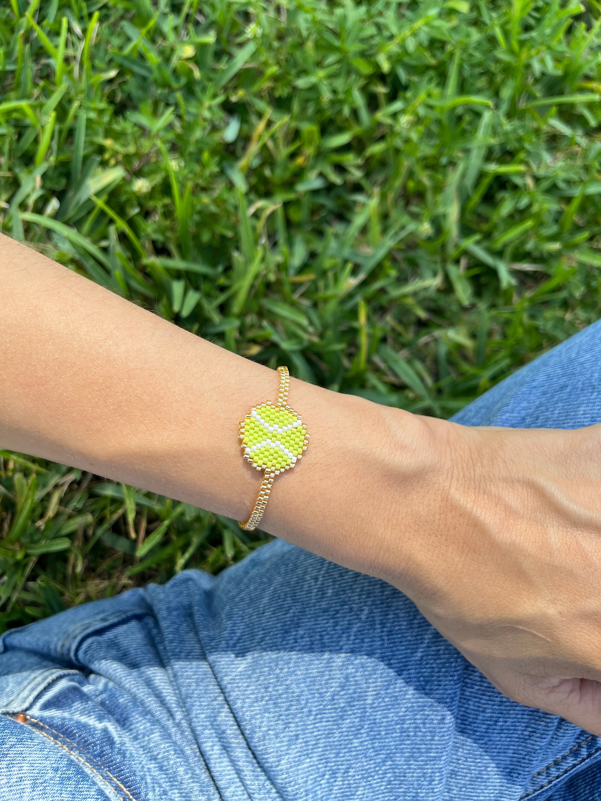 The bracelet is made with gold plating and authentic Japanese beads.